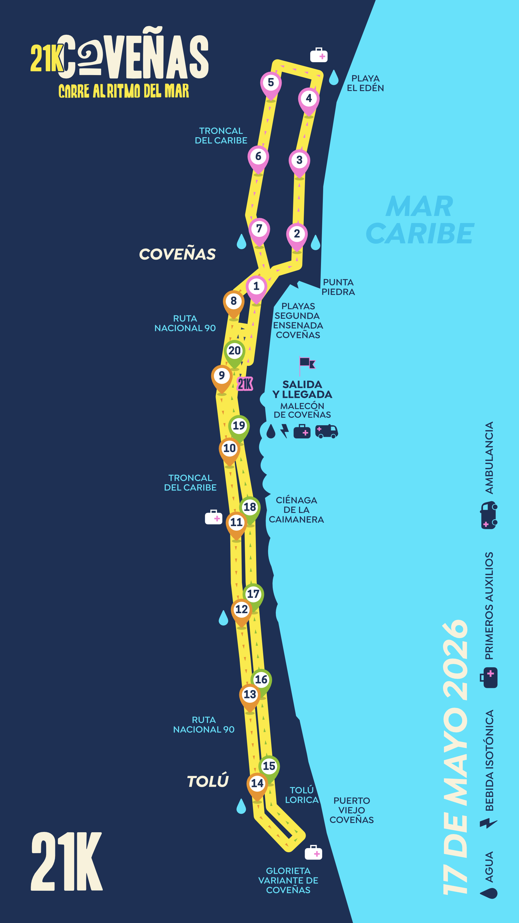 21K: 5:30 a.m. | Tiempo máximo: 3 horas10K: 5:30 a.m. | Tiempo máximo: 2 horas